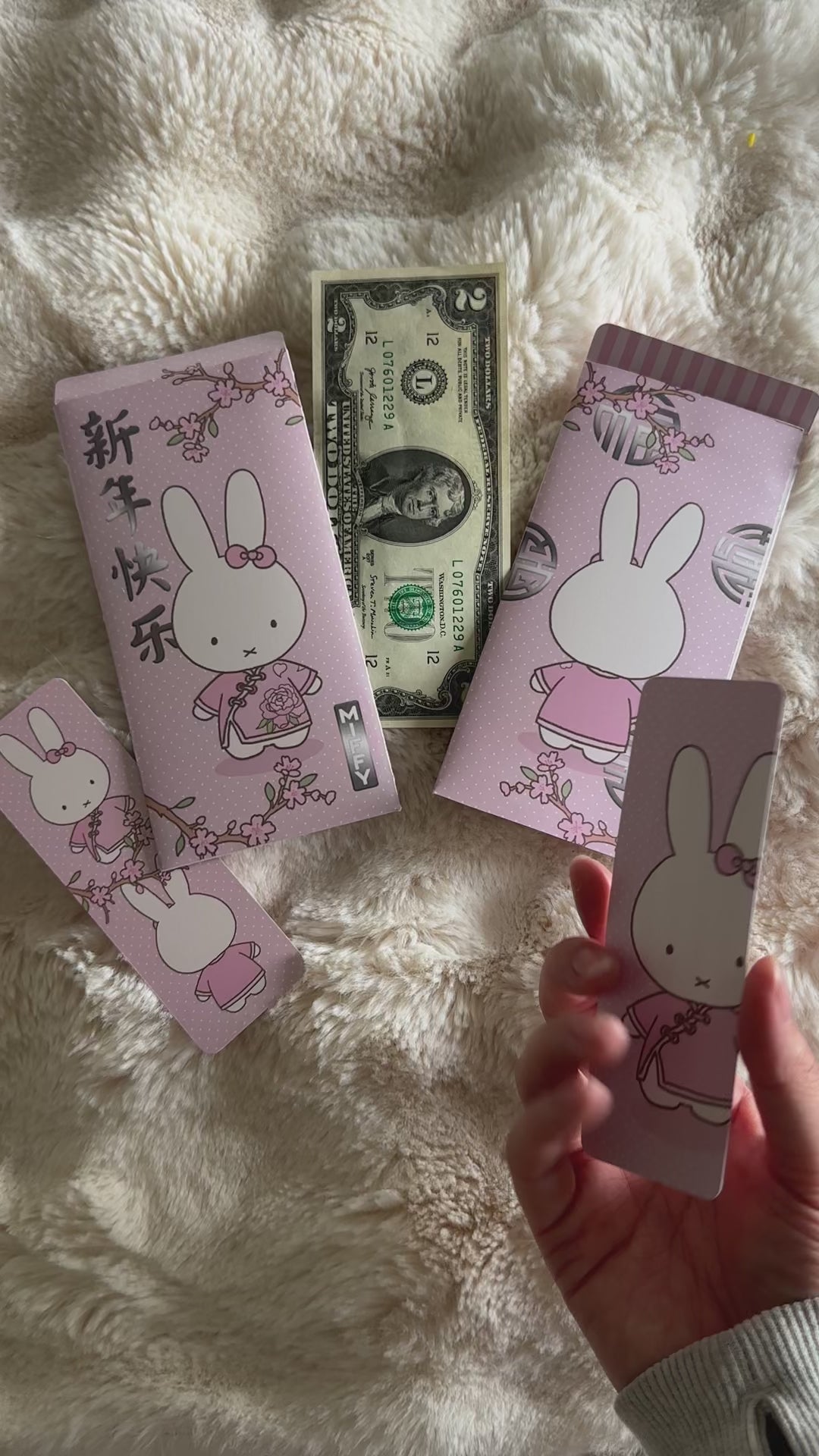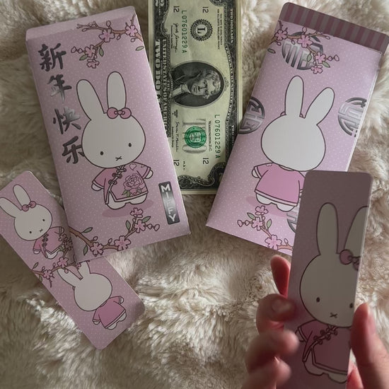 When printing out these envelopes, there was a little bit of extra white space on each sheet. Therefore, we filled in these spaces with on-theme Miffy Bookmarks to reduce paper waste! Each order of a lucky envelope will come with two bookmark inside- nothing extra is needed to be done on your end to receive these! Also, these are pre-assembled- meaning they’re cut, folded and glued by us!